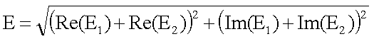 Im folgenden sei vorausgesetzt, dass die Wellen in derselben Ebene polarisiert seien. Allerdings sollen sich die Wellen in ihrer Phasenlage unterscheiden. Man kann dann die Feldstärkevektoren in der komplexen Ebene (Zeigerdiagramm) auftragen, wobei sich die Richtung von E nunmehr nicht auf die Orientierung im Raum sondern die Phase der Feldstärke bezieht. Dann gilt: