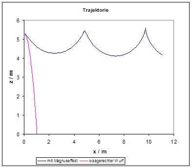 Zylinder durch den Magnuseffekt eine horizontale Geschwindigkeitskomponente vx verleiht.
